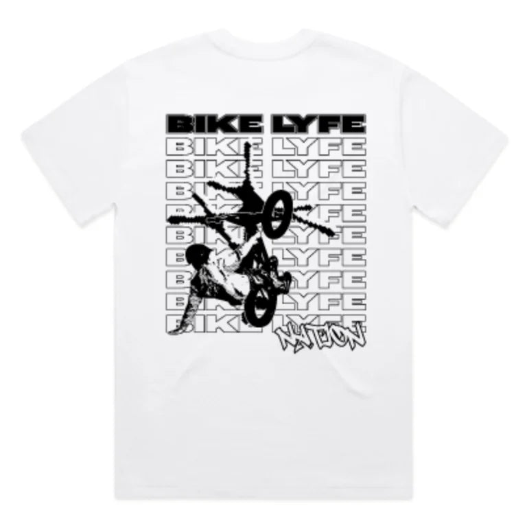 Bike Lyfe Nation Essentials Tee. Graphic screened at left chest. Large graphic on back. Crew neck. Short sleeve. 100% Cotton. Machine wash.