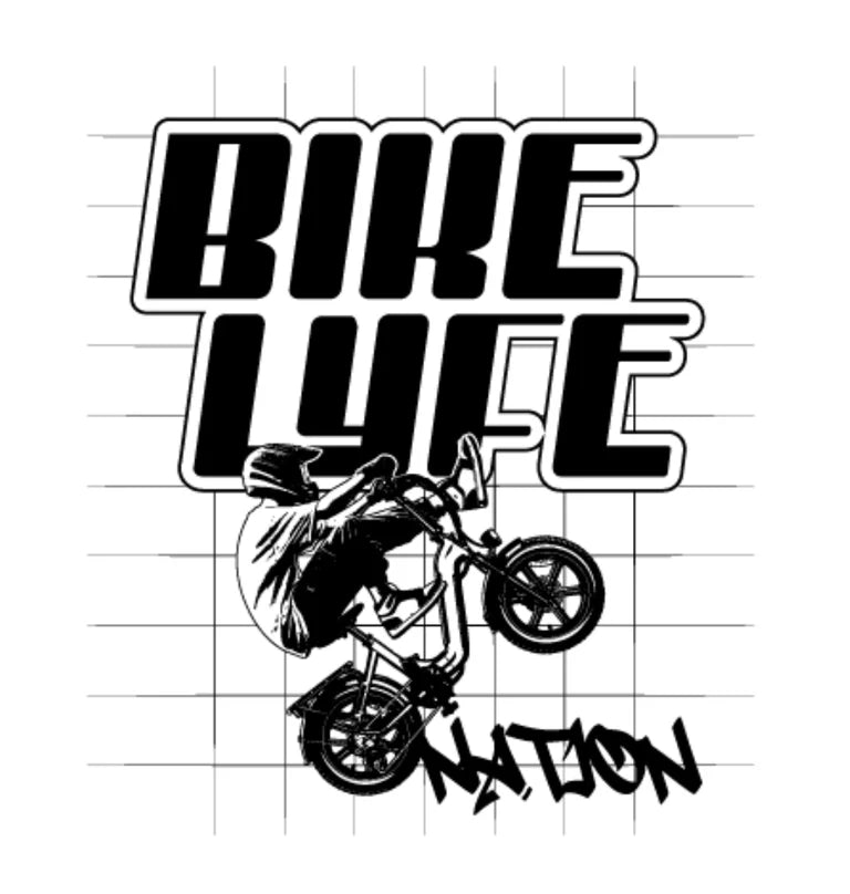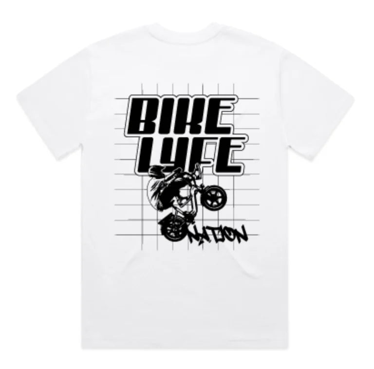 Bike Lyfe Nation Essentials Tee. Graphic screened at left chest. Large graphic on back. Crew neck. Short sleeve. 100% Cotton. Machine wash.